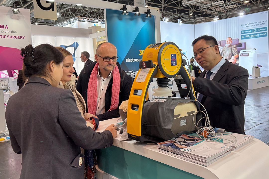 Durante a exposição, apresentamos uma impressionante gama de dispositivos que salvam vidas, sublinhando a nossa dedicação à tecnologia avançada e a funcionalidades inovadoras. Entre os destaques, estiveram várias séries de ventiladores para transporte e cuidados intensivos, bem como ventiladores para cuidados médicos domiciliares concebidos para diversos contextos. Apresentámos também máquinas de reanimação cardiopulmonar automática, desfibriladores manuais e desfibriladores externos automáticos (DEAs). Cada um destes produtos foi meticulosamente concebido com foco no atendimento das necessidades dos pacientes e na melhoria da experiência geral do utilizador.